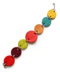 Ręcznie wykonana bransoletka z naturalnych skór połączonych srebrnymi stalowymi kółeczkami.