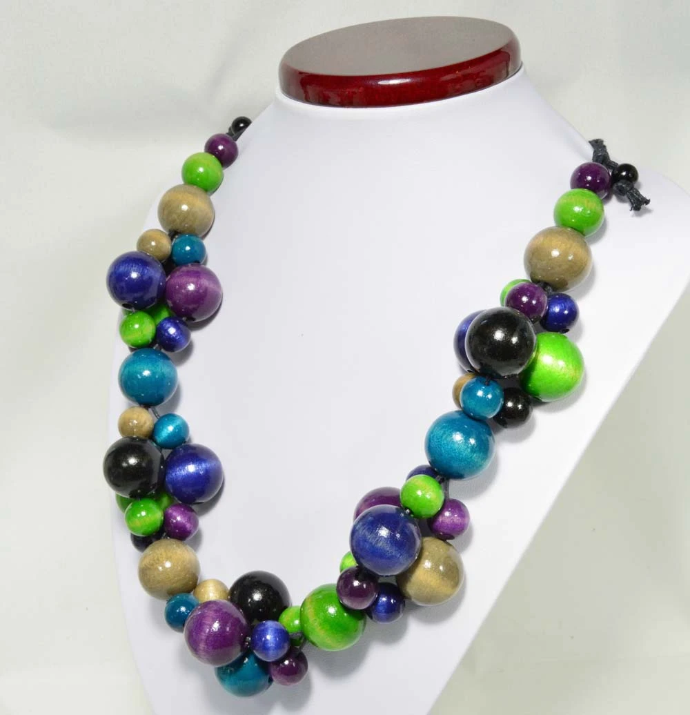 Regulowany naszyjnik z drewnianych koralików