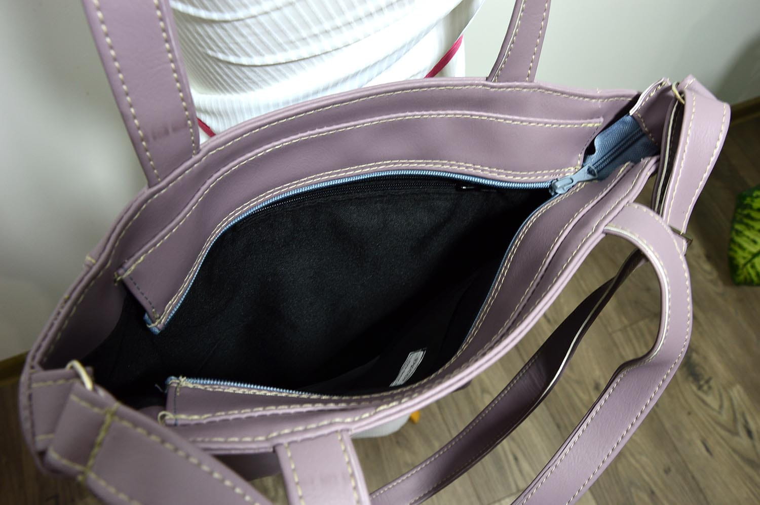 Prosta torebka na ramię z ekoskóry to idealny dodatek dla każdej kobiety. Wykonana z błyszczącej ekoskóry z tłoczonym wzorem, który imituje naturalną skórę, ta torebka prezentuje się bardzo elegancko i stylowo. Jej wnętrze to czarna podszewka, w której znajdują się dwie kieszenie, z czego jedna jest zapinana na suwak. Dzięki temu można bezpiecznie przechowywać drobne przedmioty, takie jak klucze czy portfel. Torebka jest również zamykana na zamek, co zapewnia dodatkowe bezpieczeństwo. Dzięki swojemu prostemu, ale jednocześnie eleganckiemu designowi, ta damska torebka na ramię będzie idealnym uzupełnieniem zarówno casualowych, jak i bardziej formalnych stylizacji. Model ten dostępny jest w trzech kolorach: beżowym - ciemny odcień wpadający z kawę z mlekiem; Brązowyn - w ciepłym odcieniu brązu; oraz szaro-fioletowym: blady fiolet wpadający w szarosć.