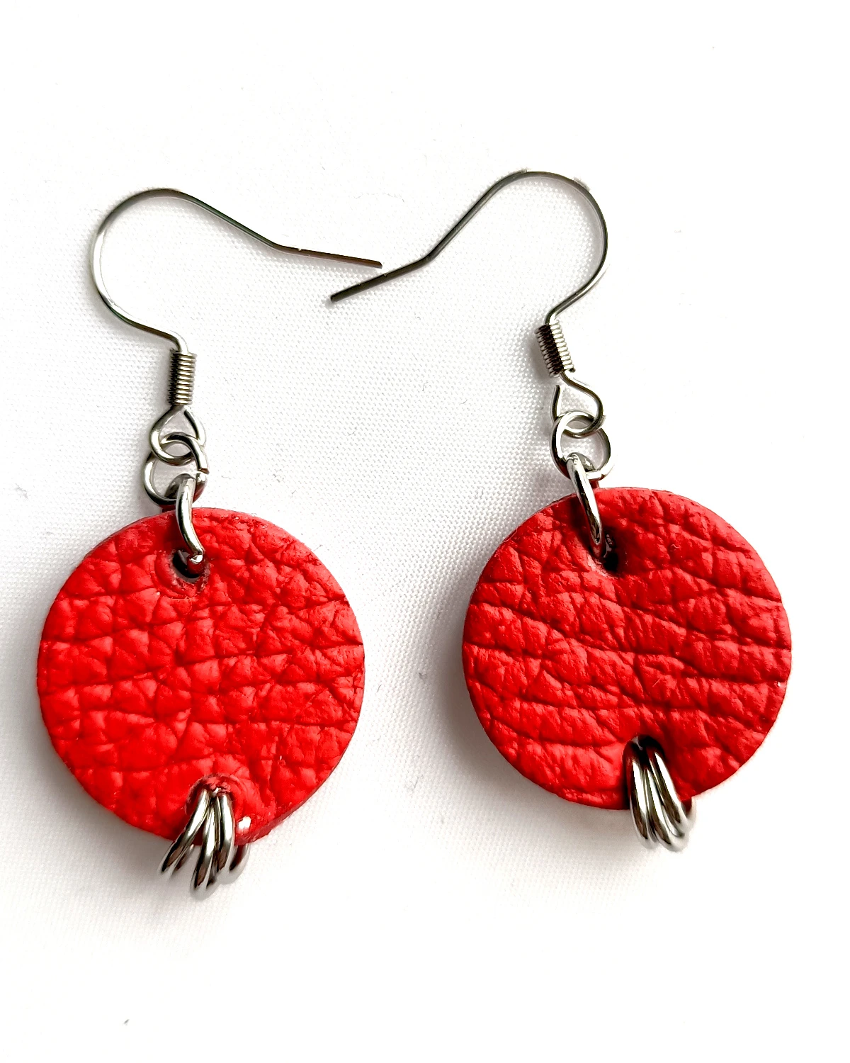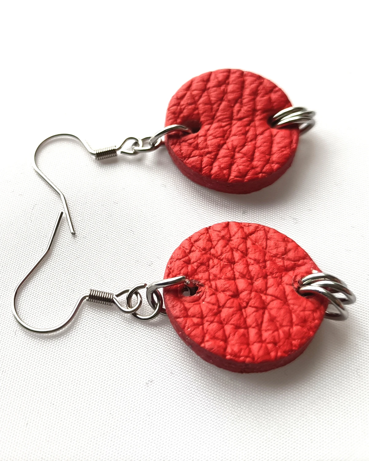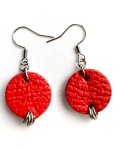 Proste kolczyki w kształcie koła wykonane z naturalnej skóry w odcieniu koloru Czerwonego.